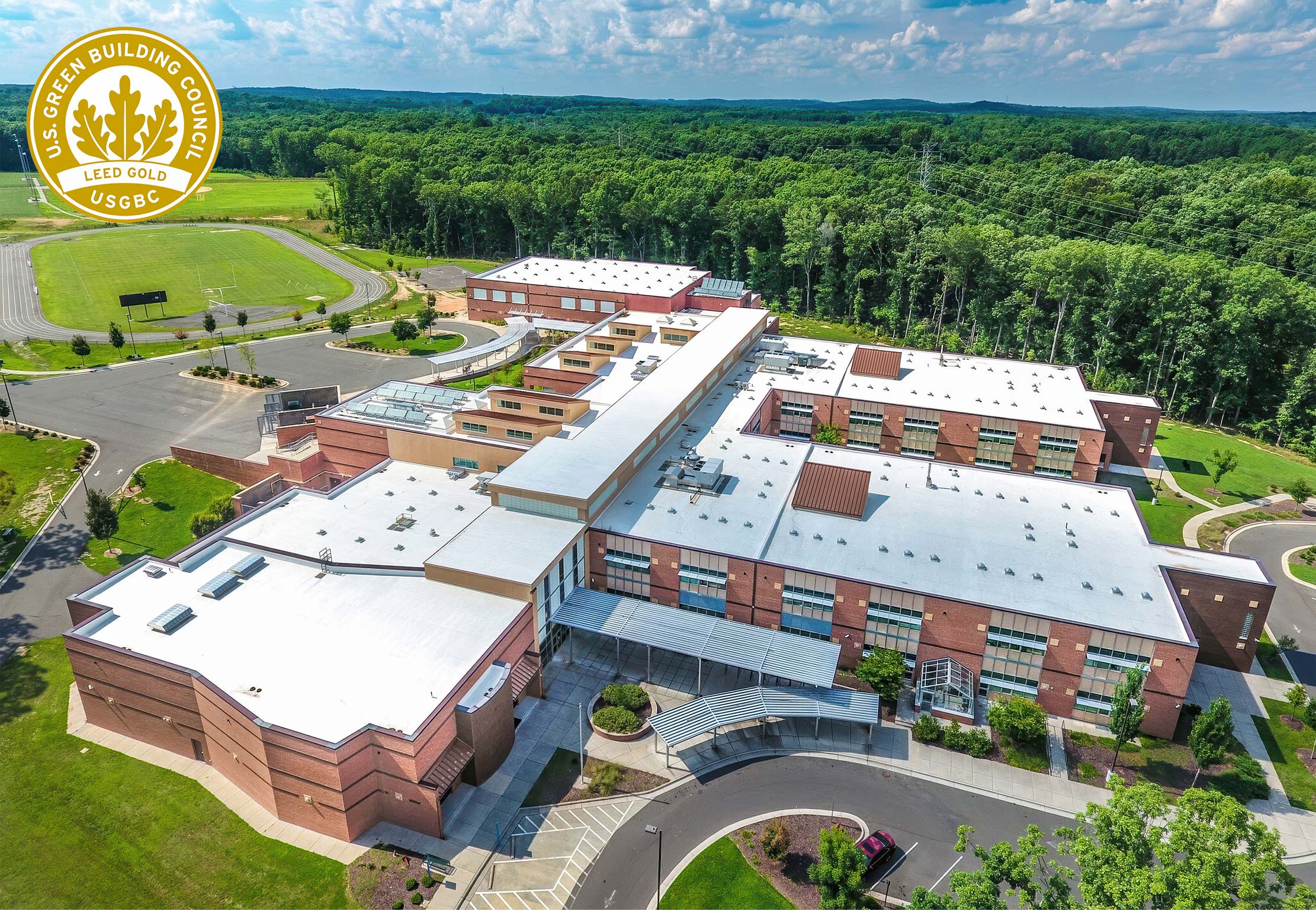 This 98,000 SF elementary school project includes parent and bus drop-off loops, vehicular circulation allowing car stacking, stormwater improvements, landscaping, athletic fields and building courtyards. This project has received USGBC LEED Gold certification.